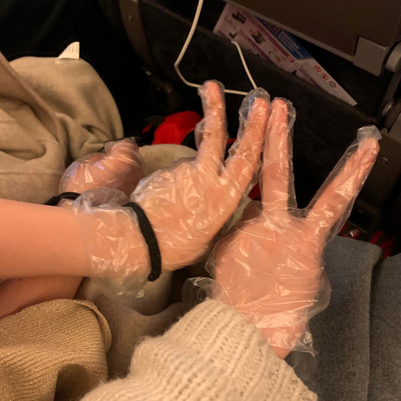 “乘坐这架航班的不是大陆人,就是台湾人,大家都很小心谨慎,全副武装?!毙〗鸷统沧龊昧朔阑さ巧戏苫脱Ы阋丫教烀挥泻煤贸苑?,飞机餐上来时,俩人快速吃完,并马上更换新的口罩。“我们右前方一个二十四五岁的中国男生,从法兰克福到台北全程12小时不吃不喝,让人非常佩服?!?/p>