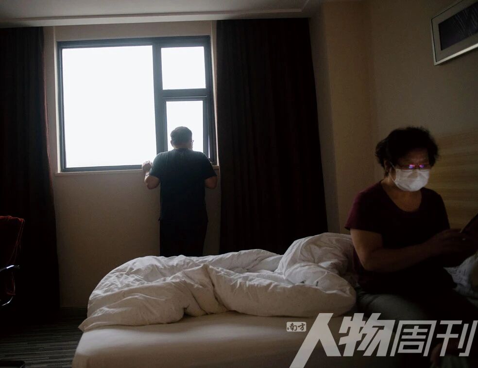 闷在房间的谢静戴着口罩坐在床前看新闻,老伴马节生走到窗前眺望着远方。她无奈地向记者诉苦道,住在隔离酒店,虽然大家都是老乡,但都不讲话。坐电梯时,戴着口罩还把脸转过去