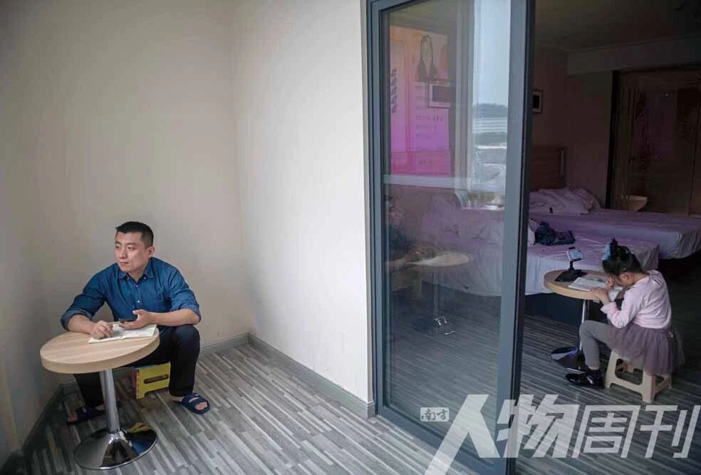 单位复工后,何杰坐在阳台开视频会议,女儿则坐在房间里上网课